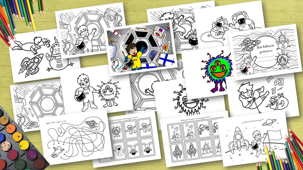 Dibujos del video: https://www.youtube.com/watch?v=ygZygTnpBns , "Viaje al espacio con Nico" en mi canal TuBocetoKids , puedes verlo para realizar la misma historia y divertirte mucho.